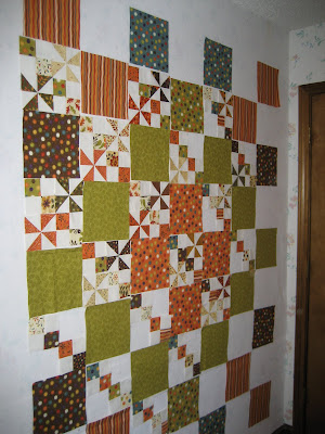 Every so often, I take a break from quilting tops and add a few more pieces, then rearrange, then take off, then rearrange, then add, then ....... whew, I need more coffee.