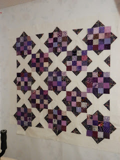 Great way to use those purple blocks and really look great. Bet the green will be just as nice....think the pattern could be used in a lot of color ways.